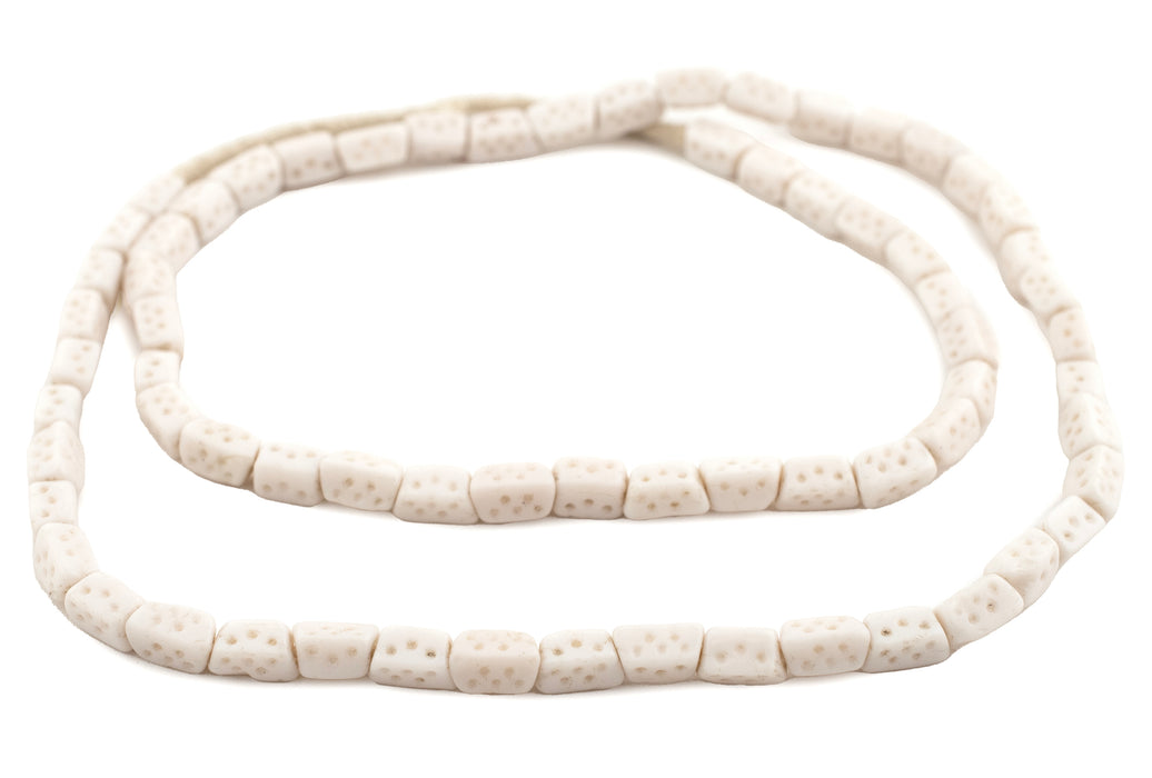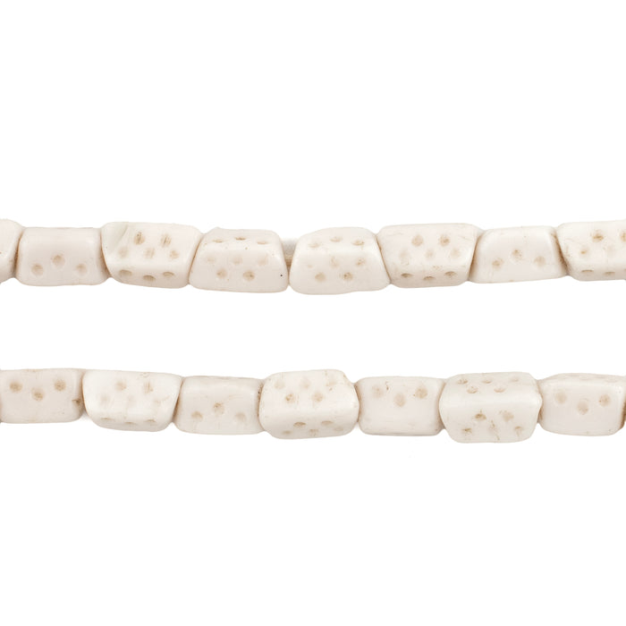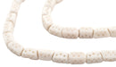 These great little beads are commonly referred to as Dice Beads due to their resemblance to playing dice. In fact, they are made by a process similar to some vintage dice cubes whereby the glass is pressed using specialized tools. The production of pressed glass beads was a major industry of 20th century Bohemia and many special designs were created for export to the African trade. Today, vintage Dice Beads such as these, though harder to find, can still sometimes surface in Ghana, West Africa. Note that due to age, some strands may show signs of wear.