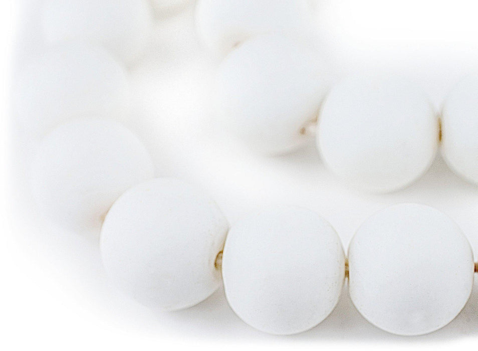Take a look at these elegant white wound glass beads. They are individually handmade by winding the hot molted glass around a mantel. The beads are quite large measuring approximately 18-20 x 19-21mm with a hole size of approximately 2mm. Each strand measures approximately 24". These beads are great for necklaces, or can be used as a home decor accessory. Simply lay them in a bowl on your coffee table and they'll do the rest of the work for you!