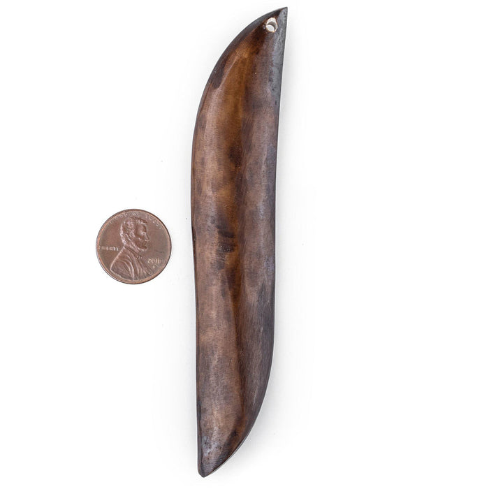 This beautiful bone pendant is hand-carved and polished by artisans in Kenya. The shape is similar to a bird wing. Pendants such as these are great for necklaces or larger earrings. Each pendant measures approximately 7 x 110mm with a hole size of approximately 2mm.