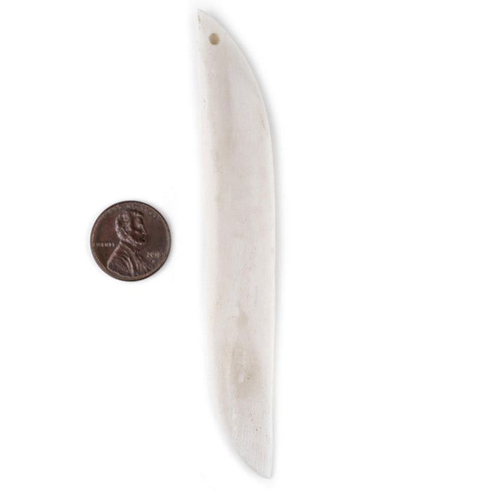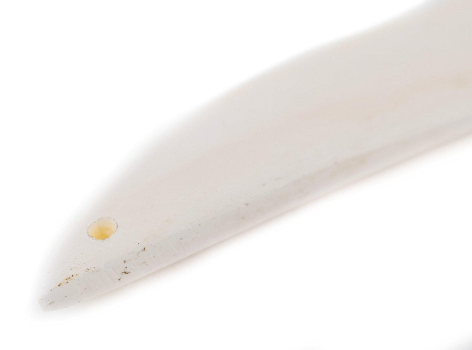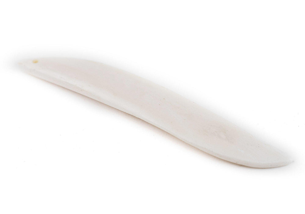 This beautiful bone pendant is hand-carved and polished by artisans in Kenya. The shape is similar to a bird wing. Pendants such as these are great for necklaces or larger earrings. Each pendant measures approximately 6 x 110mm with a hole size of approximately 2mm.