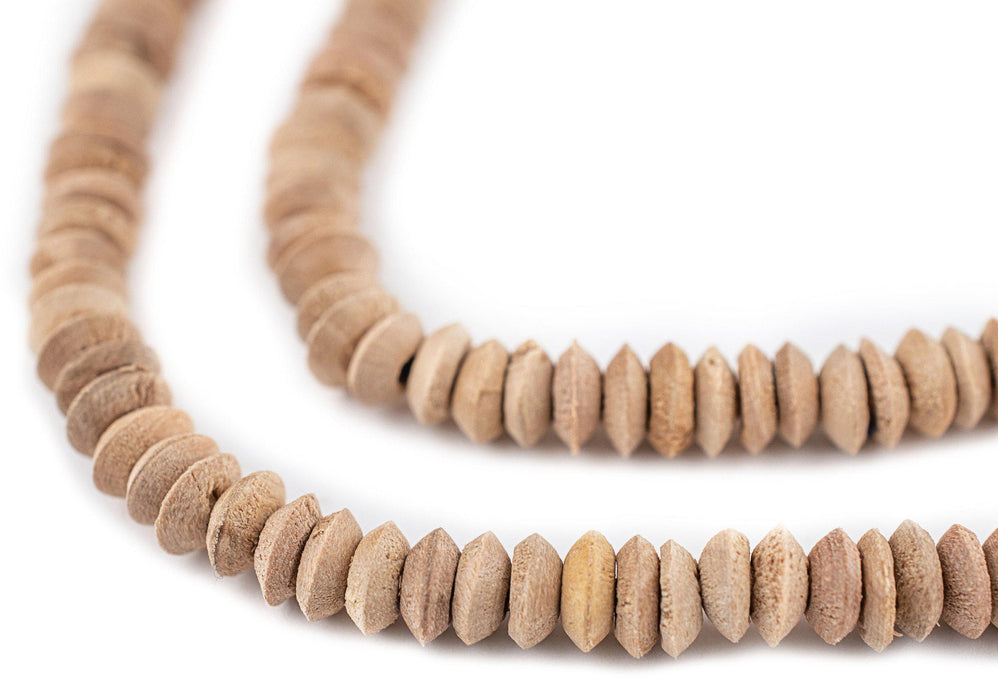 Beautiful strand of wood saucer/disk beads in a natural color. Each bead measures approximately 2-3 x 6-7mm in size, with a hole size of approximately 2mm. Strands measure approximately 24 inches in length.