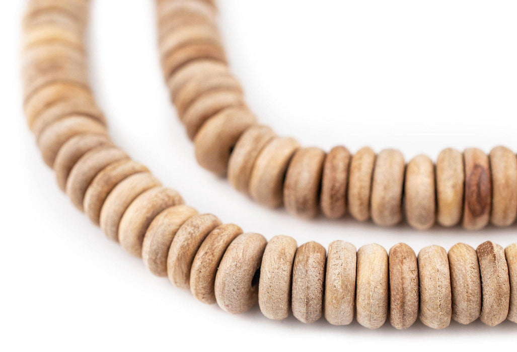 These disk beads are made using natural wood. Each bead measures approximately 3-4 x 12mm with a hole size of approximately 3mm. You will receive a full strand measuring approximately 32".