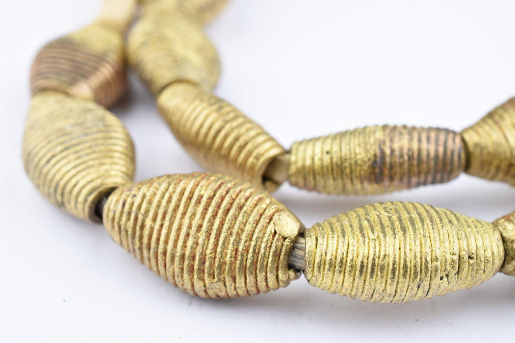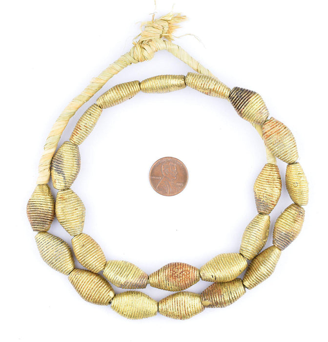 Wound Flattened Bicone Ghana Brass Beads (23x14mm)