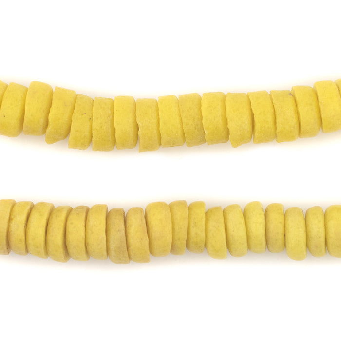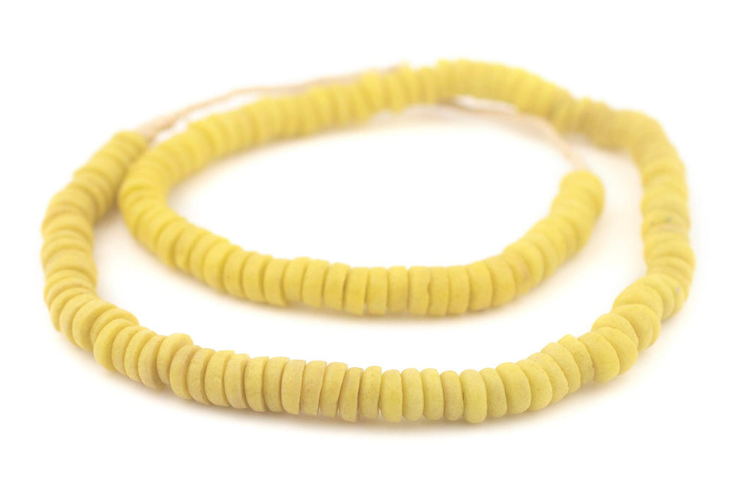 Checkout this beautiful strand of Ashanti glass disk beads. The process of making these beads is unique to Africa and has been used for over 1000 years. Pulverized glass of various colors is poured into a clay mold, using a cassava stem for the bead's hole. The mold is placed in a furnace and heated until the glass particles congeal without actually melting and the stem burns out. The Ghanaians have been making beads in this manner since the 1600s. Each bead measures approximately 4 x 10mm with a hole size of approximately 2-3mm. You will receive a full strand measuring approximately 28". Available in many colors.