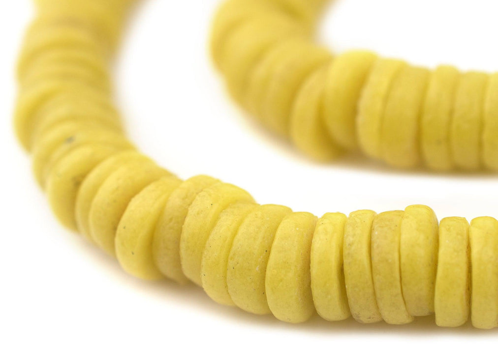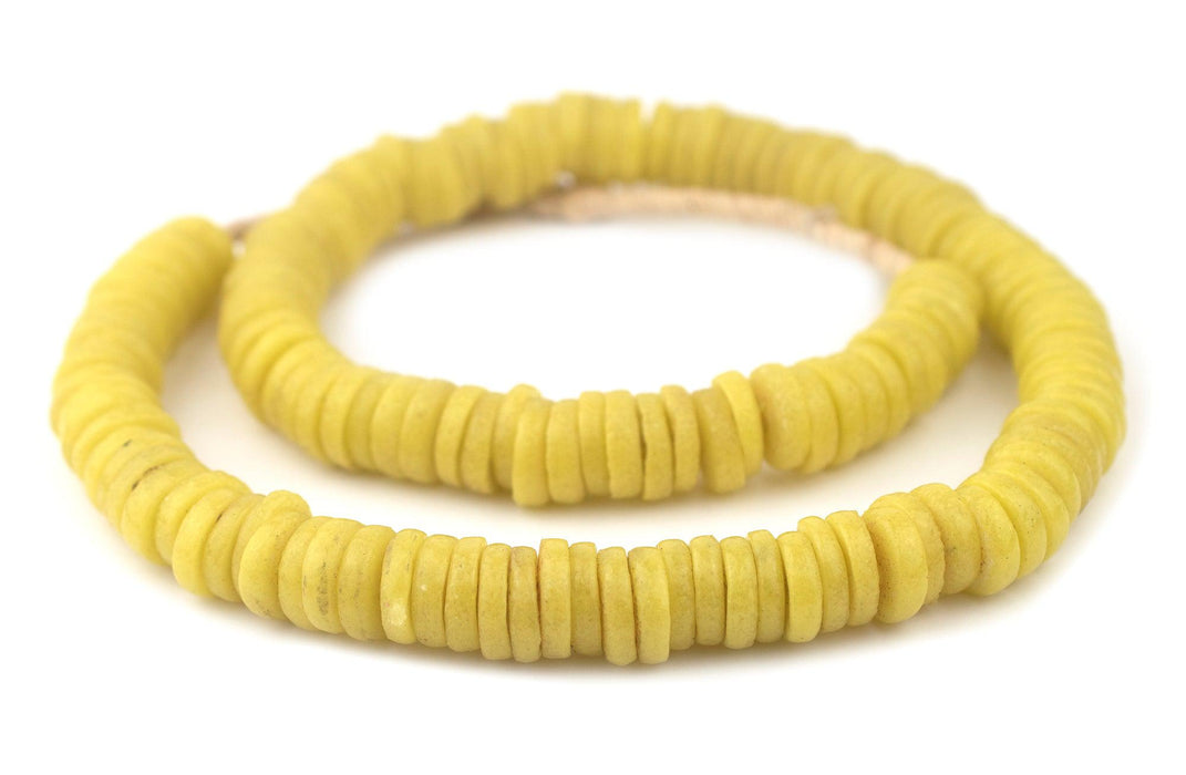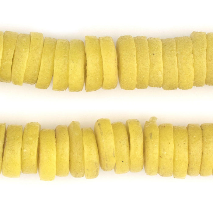 Checkout this beautiful strand of Ashanti glass saucer beads. The process of making these beads is unique to Africa and has been used for over 1000 years. Pulverized glass of various colors is poured into a clay mold, using a cassava stem for the bead's hole. The mold is placed in a furnace and heated until the glass particles congeal without actually melting and the stem burns out. The Ghanaians have been making beads in this manner since the 1600s. Each bead measures approximately 4-5 x 15-16mm with a hole size of approximately 3mm. You will receive a full strand measuring approximately 28". Available in many colors.