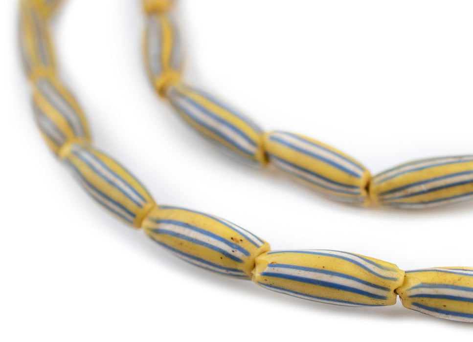 Yellow & Blue Striped Venetian Watermelon Chevron Beads