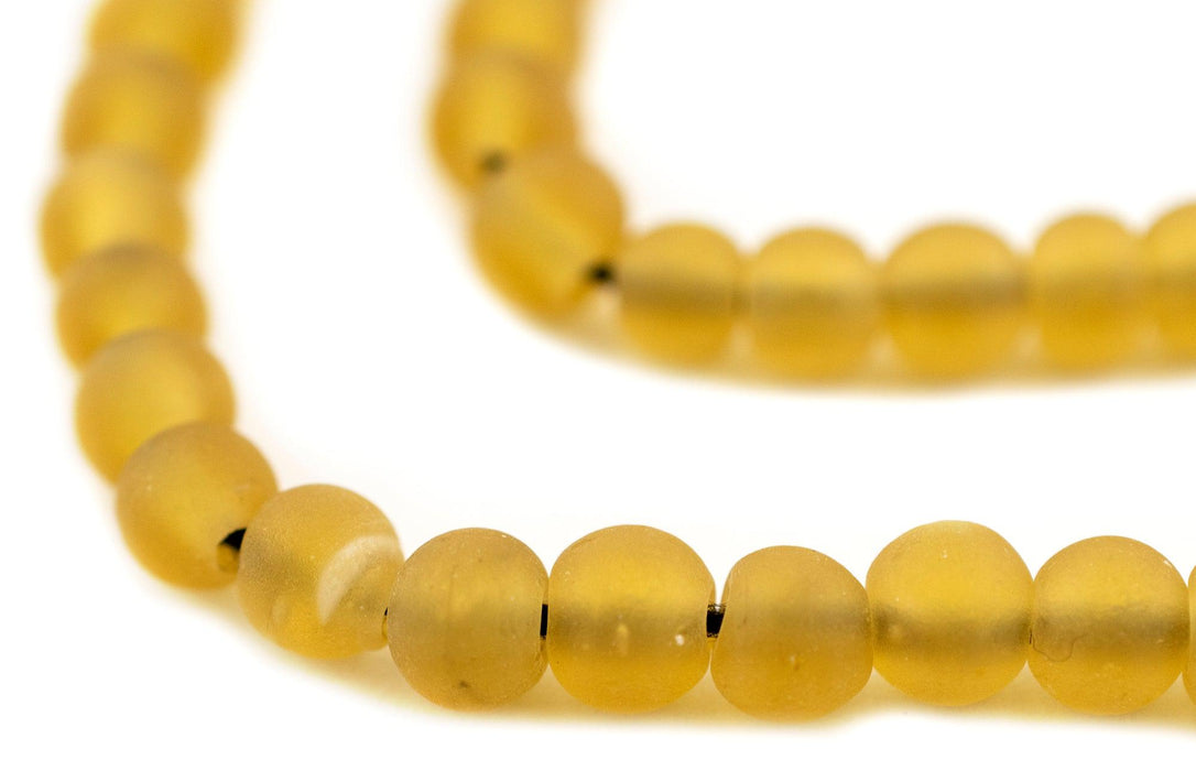 Take a moment to admire the lovely tone and translucence of these Yellow Frosted Sea Glass beads. Each bead measures approximately 6 x 7mm, with a hole size of approximately 1mm. You will receive one strand measuring approximately 26". There are around 90 beads on each strand. Grab a strand for yourself today!