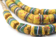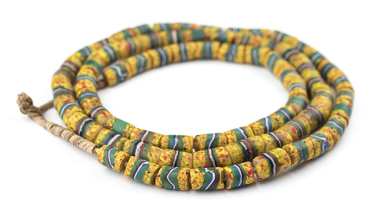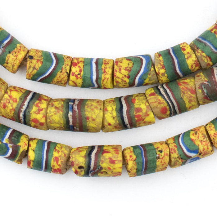 Yellow & Green Cylindrical Striped Venetian Trade Beads