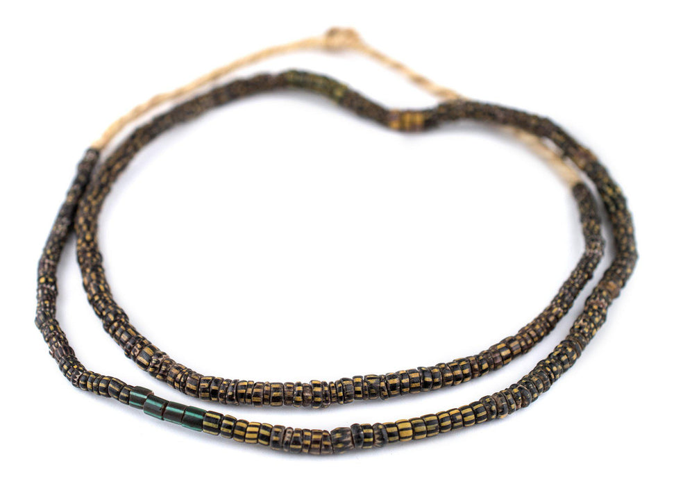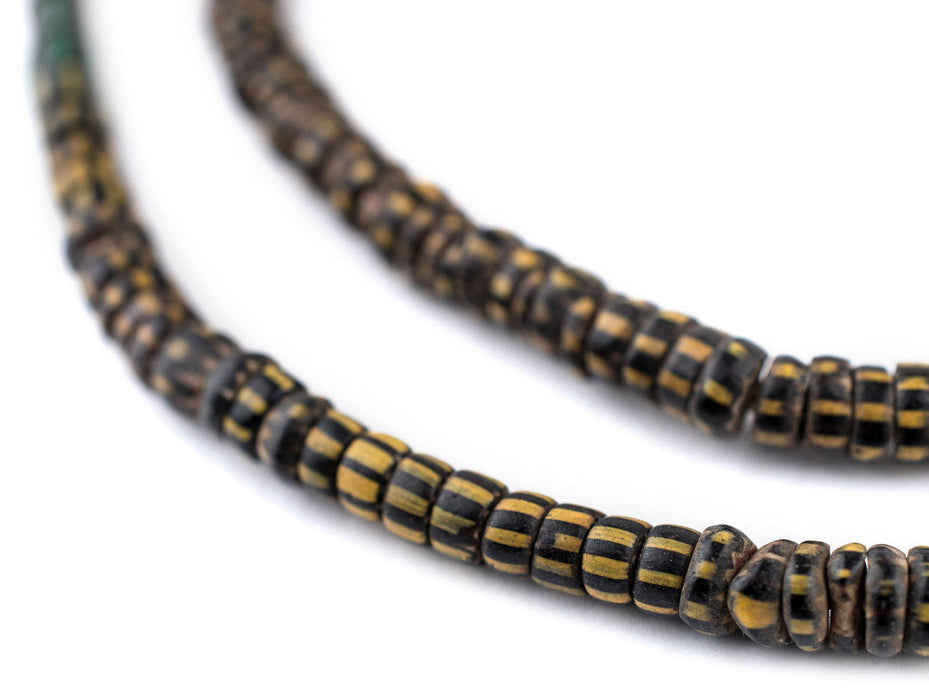 These authentic Aja beads are made from Venetian Glass. Aja beads such as these are identified by their distinctive disk-like shape. To this day, Venetian and Murano glass makers are world renown for the quality of their craftsmanship. Likely dating to the early 1900s, these antique glass beads were traded primarily to West Africa. Each bead measures approximately 1-4 x 5-6mm. Bead count is intended to be approximate. You will receive the exact strand pictured. Only one available.