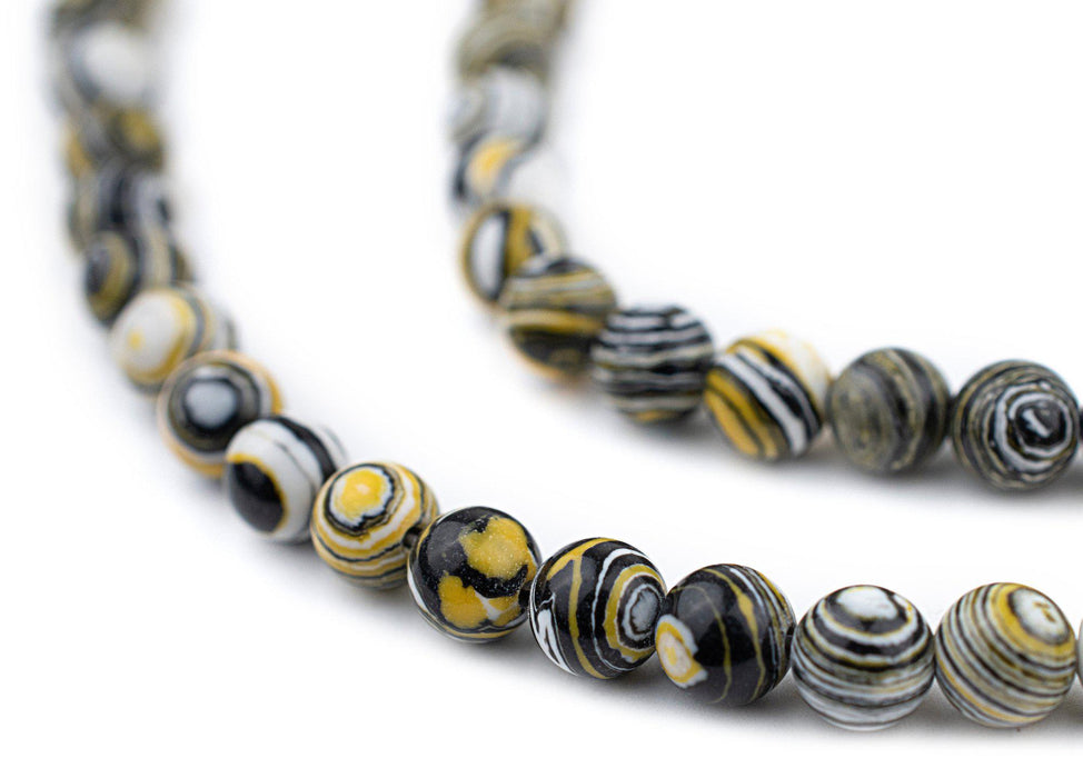 These whimsical stone beads are fashioned in a banded pattern similar to that of malachite gemstone. Available in a variety of sizes and colors, this round bead measures 6 x 6mm with approximately 68 beads on each 16" strand. Try a strand of these super fun beads today!