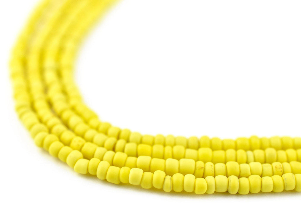 These delightful yellow glass seed beads are versatile and fun to work with. The smooth matte surface and somewhat irregular shape give them a rustic boho feel. Use them as spacers or to add a splash of color to your original designs. Each 24" strand includes approximately 450 individual beads each measuring approximately 1 x 2mm. Available in a many colors and sizes. Multiple strands may be pictured. Each strand sold individually. Get your favorites today!