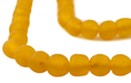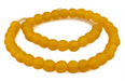 Recycled glass beads are a type of indigenously produced African bead from Ghana West Africa. These beautiful yellow color recycled beads are made using an old method that has been used for centuries. The glass itself is derived from a variety of recycled sources including old beverage and medicine bottles. The procedure for making the beads consists of a number of steps whereby powdered glass is poured into molds of clay and baked in a specialized oven. These beads are produced in large part by the Krobo tribe and through recycling glass are environmentally friendly.